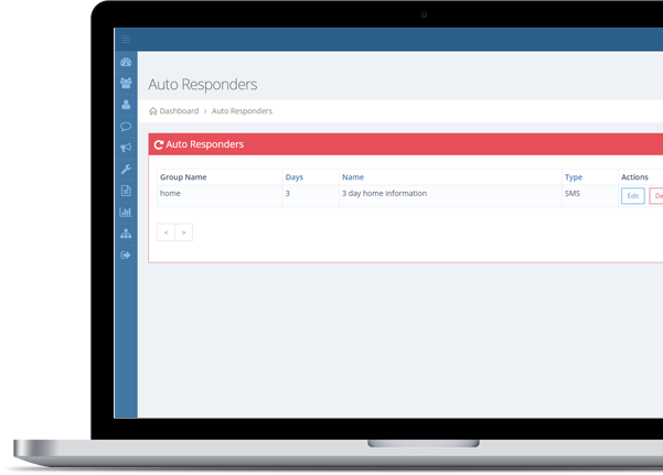 Search on name, number, group and source of sign-up. Send these contacts a SMS individually from here or as part of a group from the bulk SMS module.